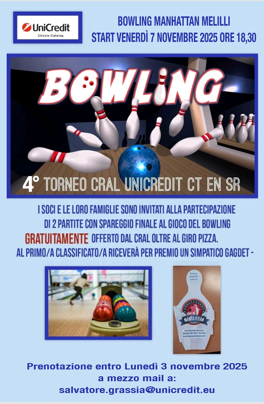 07 NOVEMBRE 2025 - 4° Torneo di Bowling a Siracusa Cral Unicrdit CT EN SR