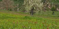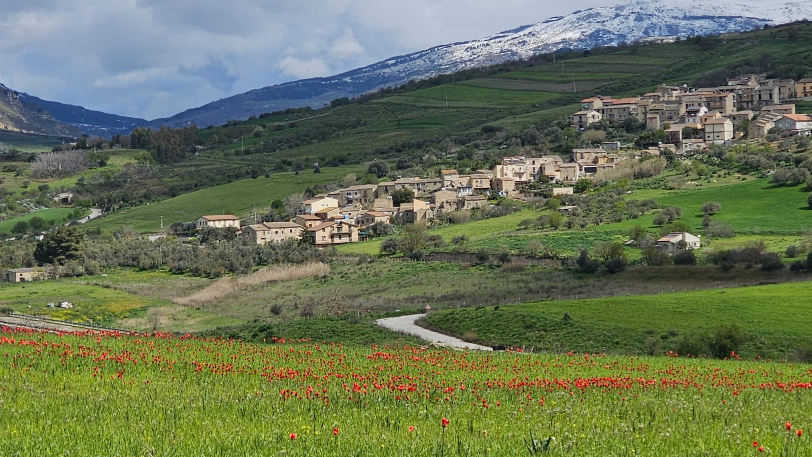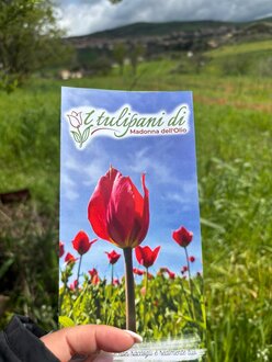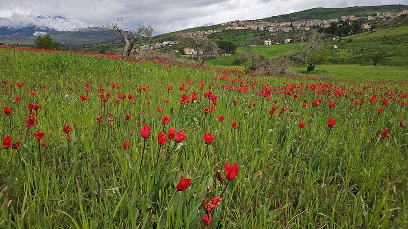 Guidati da un esperto borgologo, abbiamo fatto ingresso nel meraviglioso campo di tulipani spontanei rossi, un miracolo della natura, e visitato il santurario della madonna dell'olio e la sua sorgente.